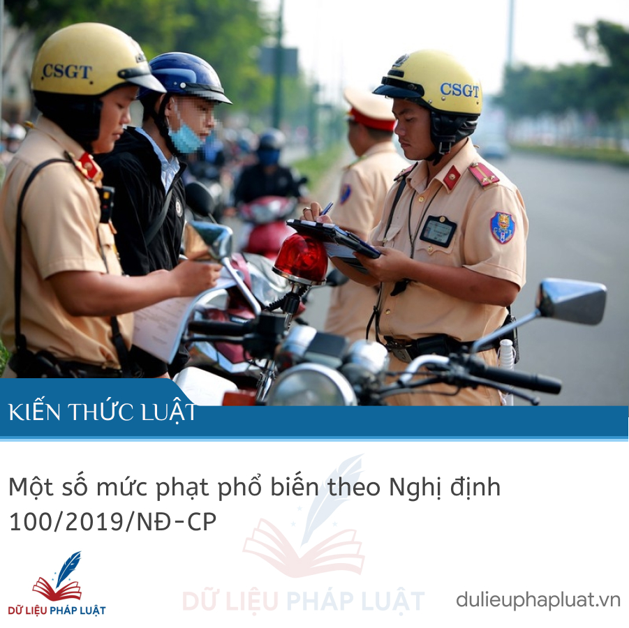 Nghị định 100/2019/NĐ-CP là văn bản điều chỉnh và xử phạt các hành vi vi phạm hành chính trong lĩnh vực giao thông mà người dân nên biết. Vậy một số mức phạt phổ biến theo Nghị định 100/2019/NĐ-CP là gì? Hãy cùng Dữ liệu pháp luật tìm hiểu ngay qua bảng tổng hợp dưới đây.